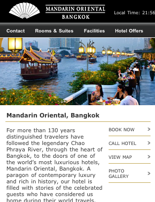 Saw this earlier today, a great implementation of a mobile site from Mandarin Oriental. They’ve moved beyond the standard, stripped-down mobile site, to give something that has a lot more branding, with a clean design and great images.