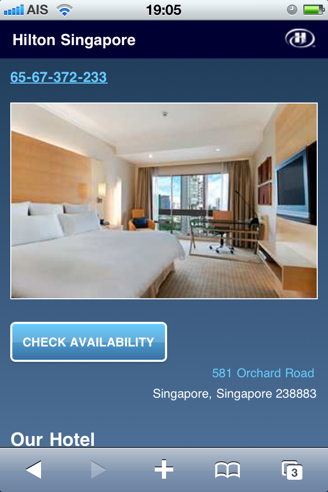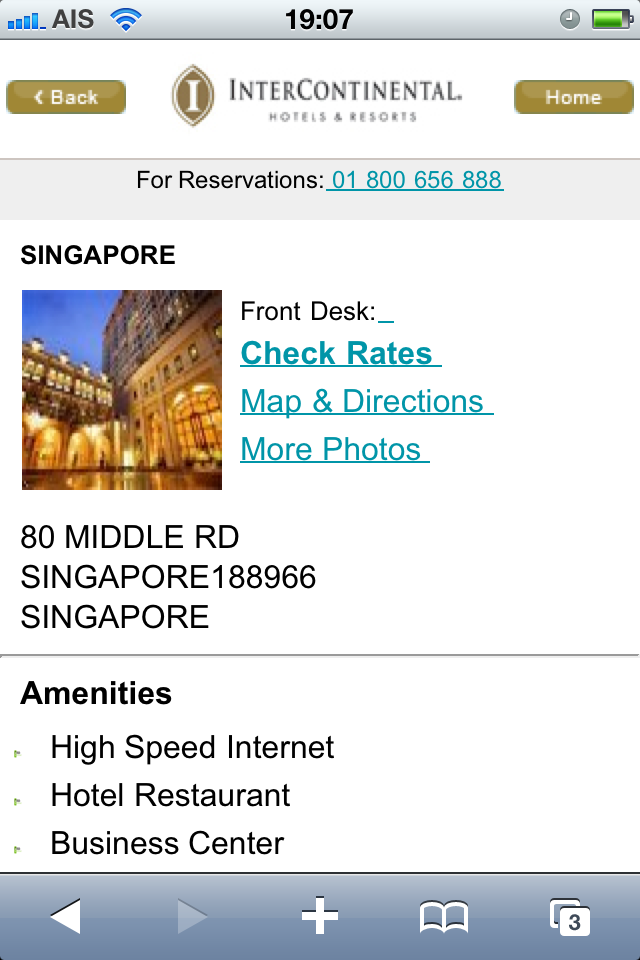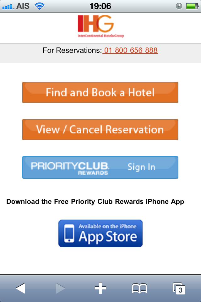 This site was much faster to load than the previous 3. Coincidentally, it was also the only site of the 5 i looked at that was served under its own URL, suggesting that IHG are doing their own mobile site development (although i could be wrong).